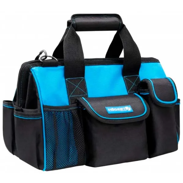 Geantă de lucru multifuncțională fabricată din poliester 600D durabil, ideală pentru profesioniști din diverse domenii. Construcția solidă și dispunerea atentă a buzunarelor o fac potrivită pentru transportul unei varietăți de unelte și accesorii. Cureaua de umăr reglabilă și căptușită asigură confortul la purtare, chiar și cu încărcături grele. Dispune de 17 buzunare externe si 8 buzunare interne.