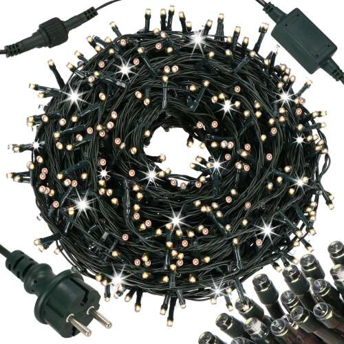 Ghirlandă LED extensibilă 3x0.4m, 50 LED-uri alb cald cu efect flash, cablu negru din cauciuc, IP44.