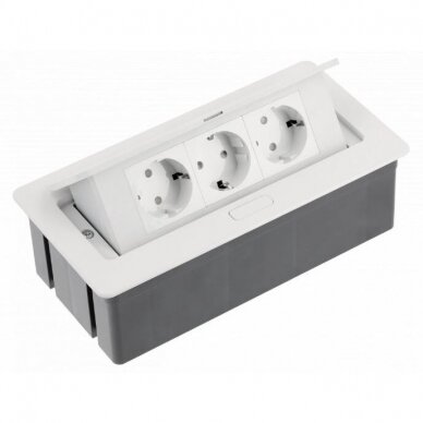 Priză încorporabilă GTV SOFT, 3xSchuko, cablu 1,5m, alb