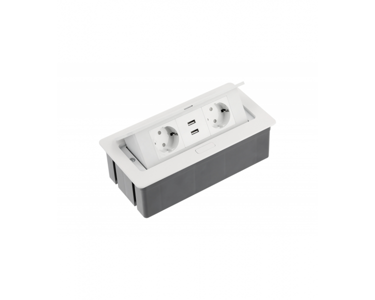 Priză încorporabilă în blat GTV AE-PBSUC2GS-10, 2 prize Schuko, 2 porturi USB 2.1A, cablu 1.5m, alb mat