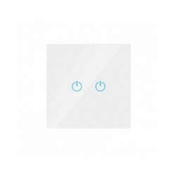 Întrerupător dublu cu touch alb, din sticlă securizată, cu design modern și funcționalitate avansată.