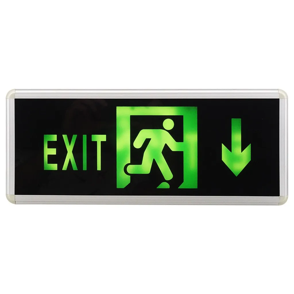 Lampa de urgență EXIT cu săgeată în jos, 3W LED, montaj tavan/perete, autonomie 2 ore.