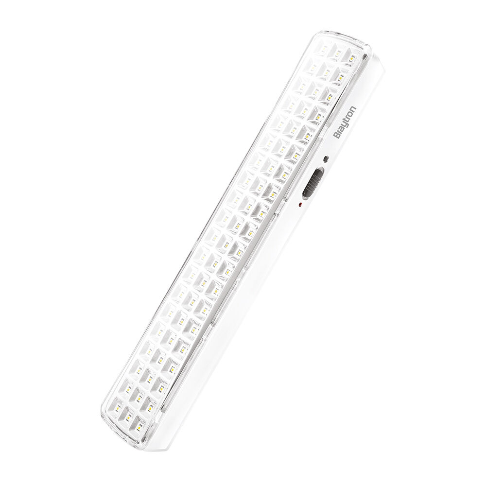 Lampa de urgență pentru perete BM90 este echipată cu 90 de LED-uri și are o putere de 6W, oferind o lumină rece de 6500K. Este ideală pentru iluminarea căilor de evacuare în caz de urgență, având o autonomie de 3 ore în modul High și 7 ore în modul Low. Fabricată din material ABS de culoare albă, această lampă are un unghi de iluminare de 120° și o durată de viață a LED-urilor de 20.000 de ore. Se montează ușor pe perete și are un grad de protecție IP20.