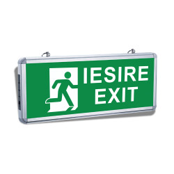 Lampa de urgență EXIT cu indicator în jos este concepută pentru a semnaliza ieșirile în caz de urgență. Echipată cu tehnologie LED de 3W și acumulator Ni-Cd de 600mAh, asigură o autonomie de aproximativ 90 de minute. Se alimentează direct la tensiunea de 220V AC și necesită un timp de încărcare de 24 de ore. Dimensiunile sale sunt 356 x 150 x 23 mm, iar montajul se realizează suspendat pe tavan.
