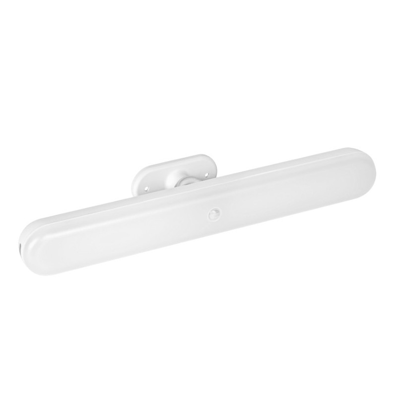 Lampă LED rotativă cu senzor de mișcare și acumulator, ideală pentru iluminarea dulapurilor, scărilor sau oglinzilor, oferind trei temperaturi de culoare și montaj flexibil.