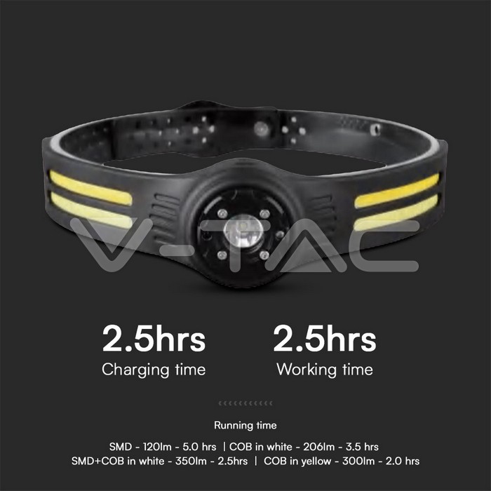 Lanternă frontală LED 3W + 5W COB IP43 cu încărcare tip C