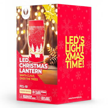 Lampa LED din sticlă cu motiv de pom de Crăciun, echipată cu comutator ON/OFF și temporizator, ideală pentru decorarea interioară în perioada sărbătorilor.