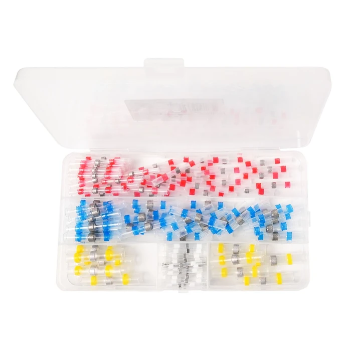 Set 100 conectori termocontractibili Lohuis pentru conexiuni electrice rapide și sigure.