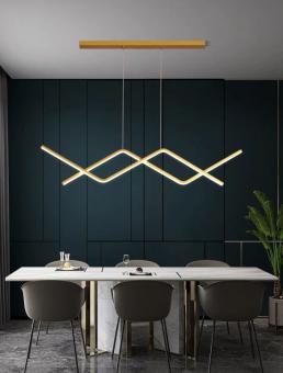 Această lustră LED suspendată cu telecomandă oferă un design modern și elegant, perfect pentru orice interior contemporan. Cu o putere de 56W și un flux luminos de 4480 lumeni, asigură o iluminare eficientă și plăcută. Dispune de trei moduri de iluminare: lumină rece, neutră și caldă, permițând ajustarea atmosferei în funcție de preferințe. Telecomanda inclusă facilitează schimbarea culorii luminii și reglarea intensității acesteia. Fabricată din aluminiu și acril, cu un finisaj auriu, această lustră este ideală pentru living, dormitor sau birou.