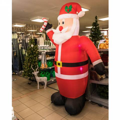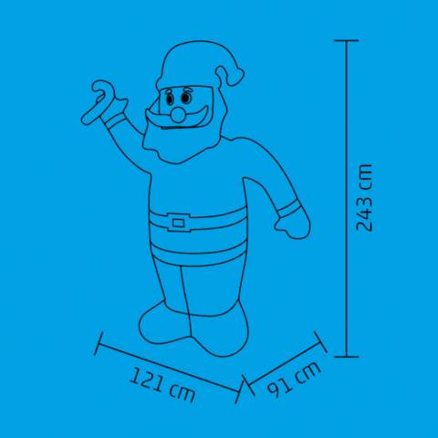 Moș Crăciun gonflabil de 240 cm cu 3 LED-uri și ventilator încorporat, perfect pentru decorarea spațiilor interioare și exterioare în perioada sărbătorilor.