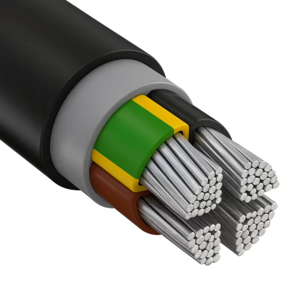 Cablu de energie armat NA2XBY 5X10 mm², 5 conductori aluminiu, izolație XLPE, manta PVC, 0,6/1 kV.