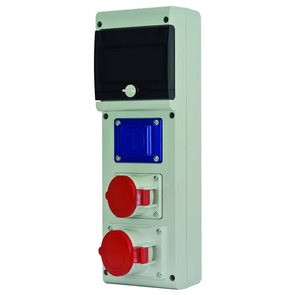 Tablou de organizare șantier Scame 632.RO0007 cu 1 priză trifazică 32A și 2 prize Schuko 16A, IP44, montaj aparent.