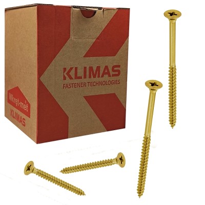 Șuruburi pentru PAL sau lemn, 4.5x50 mm, cap înecat, zincate galben, amprentă PZ2, conform DIN 7505.