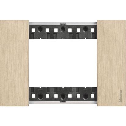 Ramă decorativă BTicino Living Now cu 3 module, finisaj auriu, fabricată din metal de înaltă calitate. Design inovator cu cadru flexibil pentru o instalare optimă și estetică modernă.