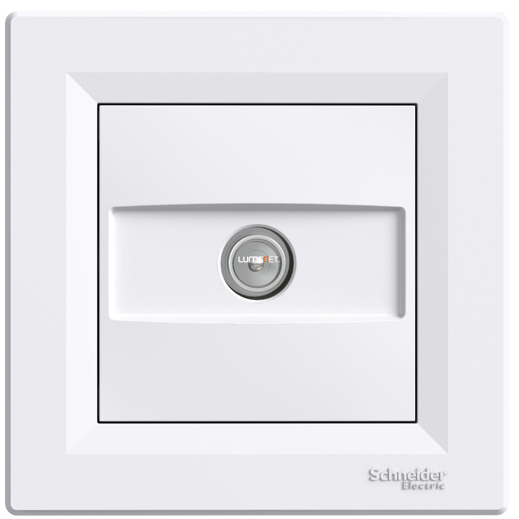 Priză TV de capăt Asfora EPH3200121, albă, montaj încastrat, conector tată IEC 9,52 mm, atenuare 1 dB, ramă inclusă.