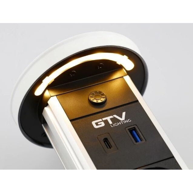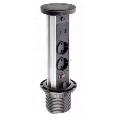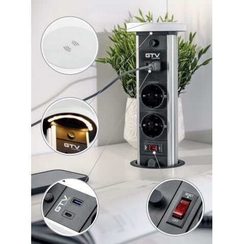 Priză încorporabilă în mobilier Camino 2x Schuko, USB-A, USB-C, Inducție, cablu 1.5 m, negru, GTV