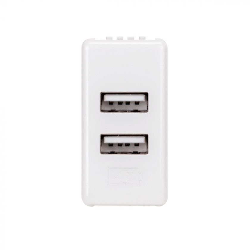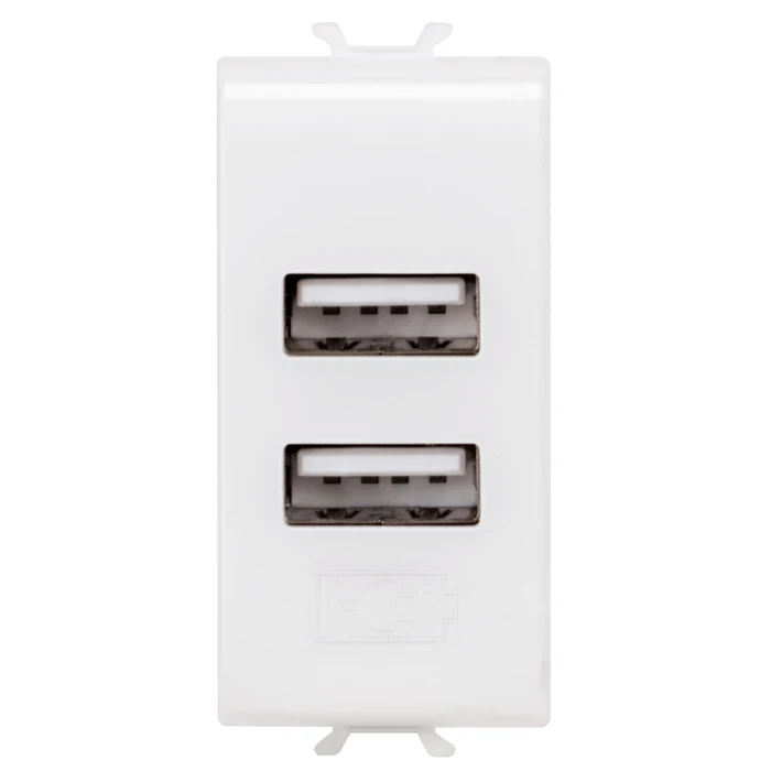 Priză dublă USB Gewiss Chorus GW10450, montaj încastrat, albă, modulară - 5V, 2.1A