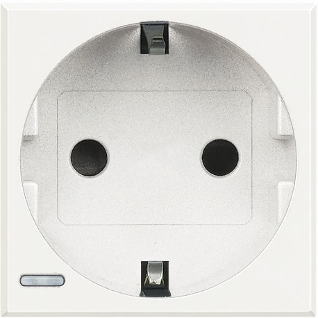 Priză Schuko 2M Alb 16A din seria Axolute de la BTicino, cu design modular și posibilitate de iluminare cu LED.