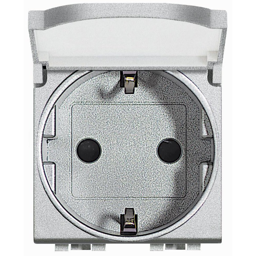 Priză modulară Schuko 2P+T cu capac, 16A, 2 module, aluminiu, Bticino Living-Light.
