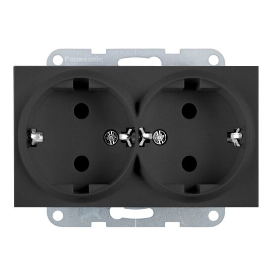 Priză dublă Schuko Karre Plus cu panou fumuriu, montaj încastrat.