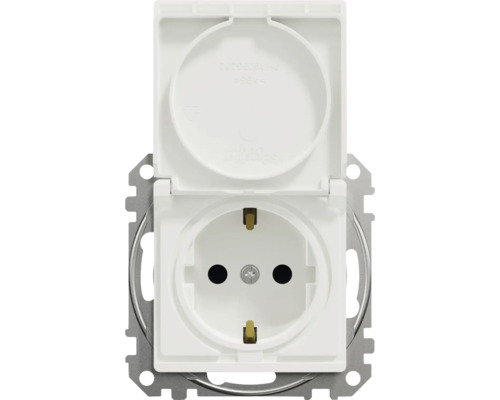 Priză simplă cu capac alb Sedna Design 2P+E, 16A, montaj încastrat, ideală pentru interioare moderne.