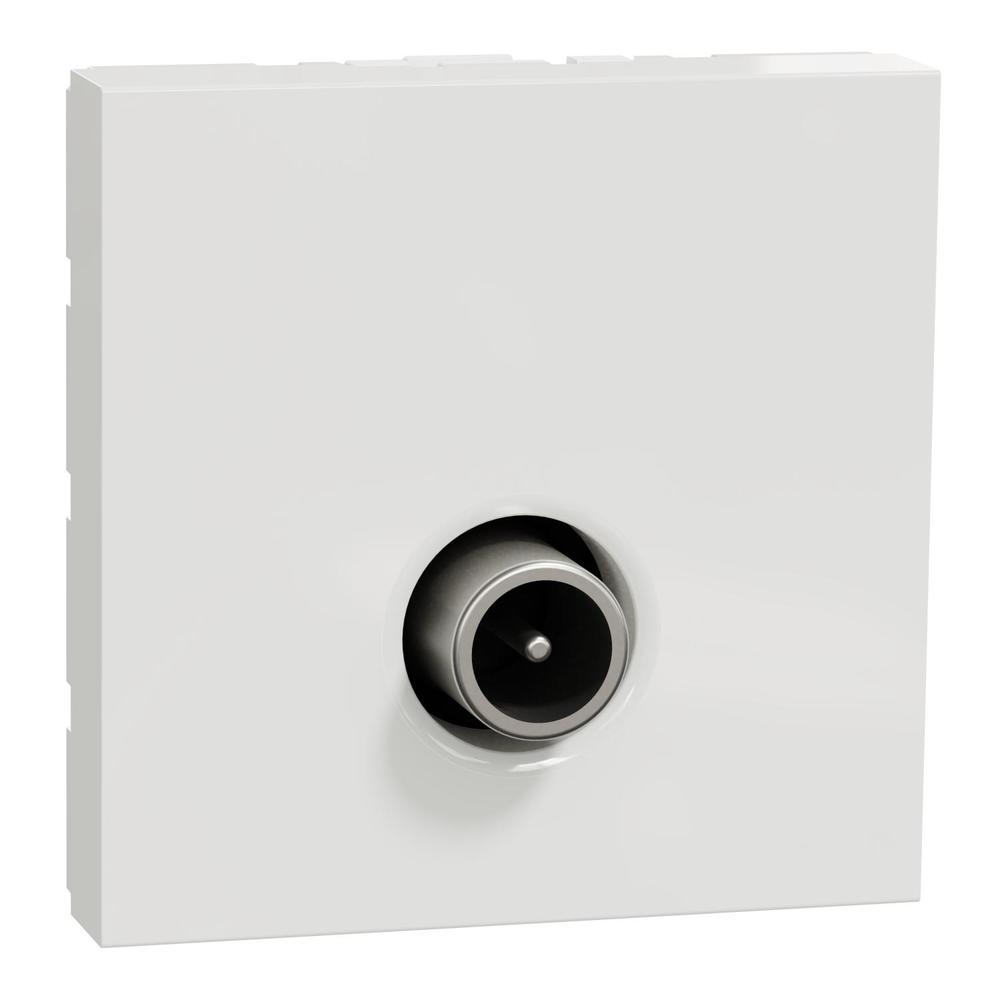 Priză TV tată individuală 2M alb din gama Noua Unica de la Schneider Electric, ideală pentru conectarea echipamentelor TV în locuințe sau spații comerciale.