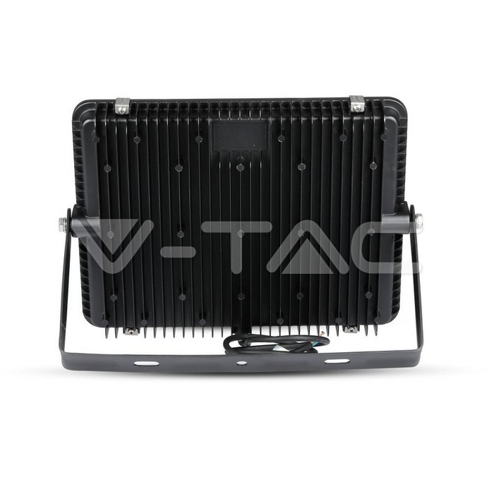 Proiector LED 200W cu chip Samsung, lumină albă rece 6500K, carcasă neagră din aluminiu, IP65, ideal pentru iluminat exterior.