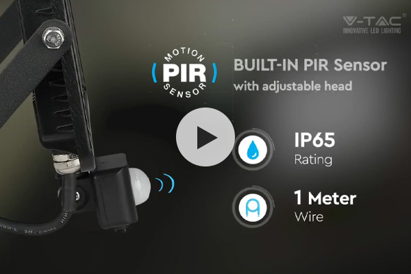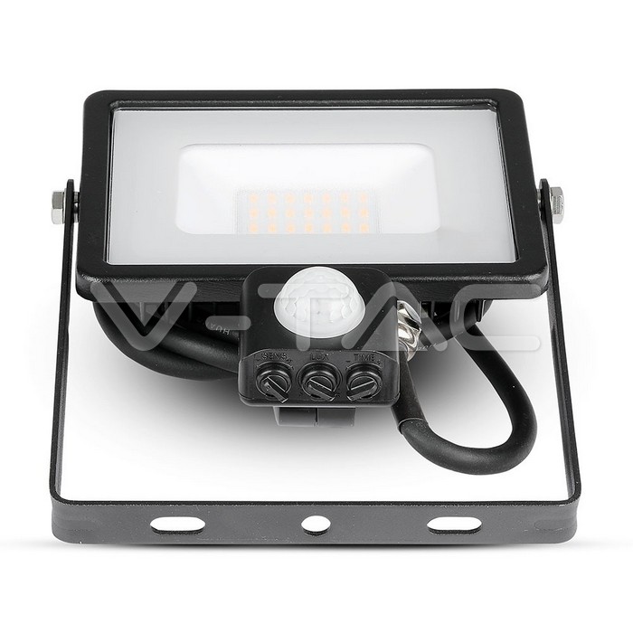 Proiector LED cu senzor de mișcare V-TAC 453, 20W, 1600 lm, lumină rece (6400K), IP65, cablu 1m, Aluminiu, Negru, clasa energetică F.