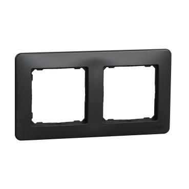 Ramă dublă antracit din gama Sedna Design de la Schneider Electric, ideală pentru montaj orizontal sau vertical. Fabricată din termoplastic ABS-UV stabilizat, oferă rezistență sporită și un finisaj mat elegant. Dimensiuni: 85 mm lățime, 156 mm înălțime și 10 mm adâncime. Compatibilă cu montajul încastrat și potrivită pentru cutii de perete. Grad de protecție IP20.
