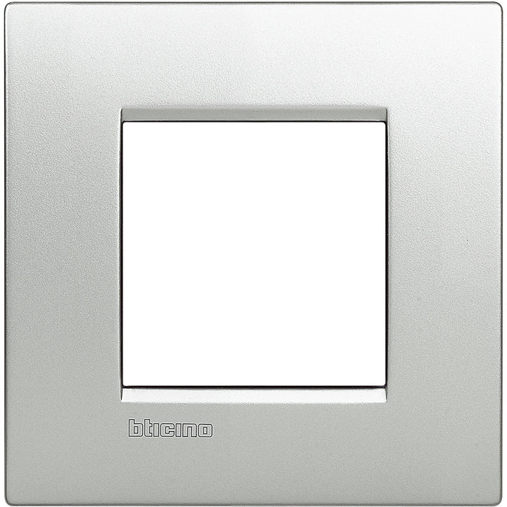Ramă ornament 2 module BTicino Living Light finisaj aluminiu, design modern și montaj ușor, ideală pentru aparataj modular din gama Tech.