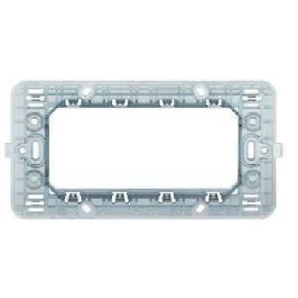 Ramă suport modulară cu 4 module din seria Matix de la BTicino, ideală pentru montaj în doze de tip 504E și compatibilă cu plăcile de acoperire AM4804 și 504/4A. Fabricată din plastic de înaltă calitate, fără halogeni, asigură o instalare ușoară și o fixare sigură a modulelor electrice.