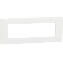 Ramă decorativă Unica Studio cu 7 module, de culoare albă, ideală pentru utilizare împreună cu mecanismele din gama Noua Unica. Fabricată din termoplastic stabilizat ABS-UV, asigură rezistență și durabilitate. Designul simplu și compact permite integrarea armonioasă în diverse tipuri de interioare, de la minimalist la tradițional. Montajul se realizează rapid, prin simpla apăsare pe mecanisme, fiind compatibilă atât cu doze rotunde, cât și cu doze modulare.
