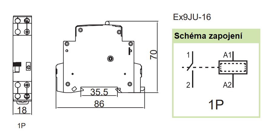 Montajul se realizează pe șină DIN, având o lățime de 1 modul și o adâncime de montare de 70 mm, ceea ce permite o instalare ușoară în tablourile electrice standard. Releul dispune de un contact normal deschis (1 NO) și permite operarea manuală prin intermediul unui comutator situat pe partea frontală a dispozitivului.