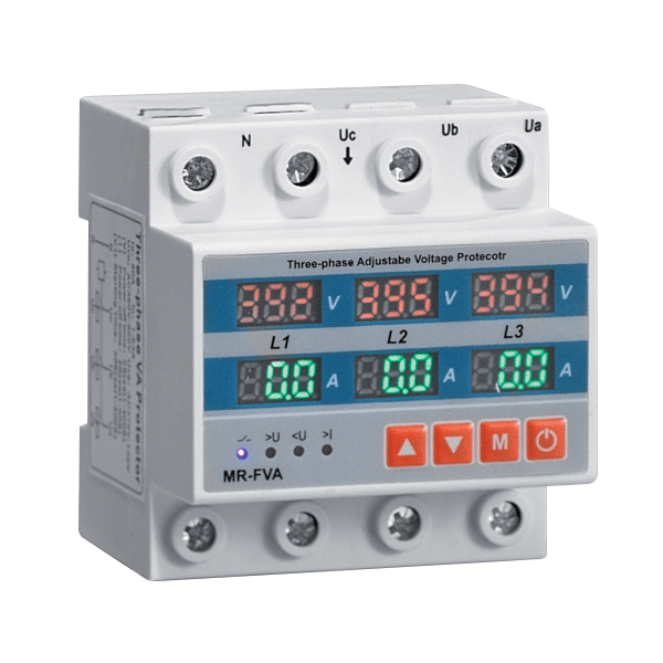 Releu digital trifazat pentru monitorizarea tensiunii și curentului, oferind protecție împotriva supratensiunii, subtensiunii și supracurentului.