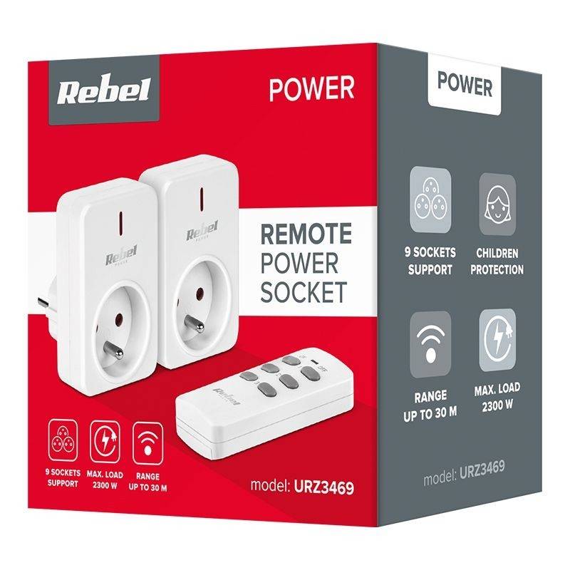Set de 2 prize cu telecomandă Rebel URZ3469, control de la distanță, 3 canale, 2300 W, 10 A, rază de acțiune până la 30 m.