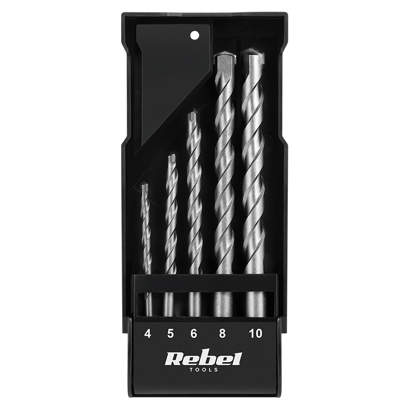 Set de 5 burghie pentru beton Rebel RB-1121, diametre 4-10mm, ideale pentru găurire în beton, zidărie și piatră.