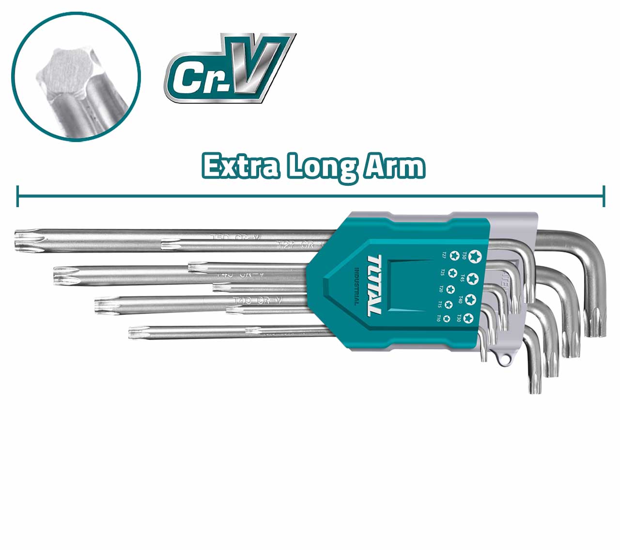 Set de 9 chei imbus Torx T10-T50 din oțel Cr-V, cu braț lung și carcasă de transport.