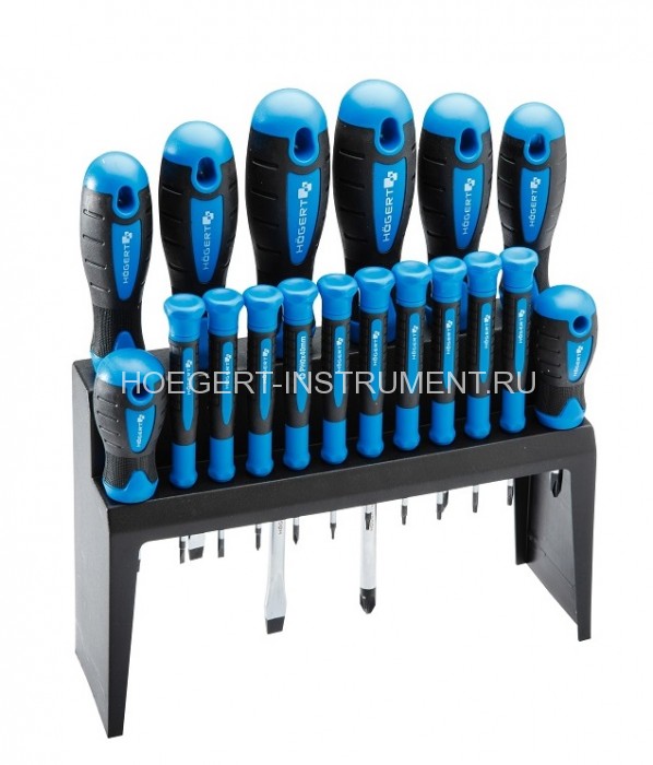 Set de 18 surubelnite HOEGERT din oțel S2 de înaltă calitate, cu vârfuri magnetice și mânere ergonomice anti-alunecare.