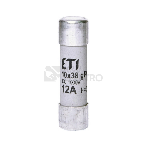 Siguranță fuzibilă cilindrică CH10x38 gPV 12A/1000V DC pentru protecția modulelor fotovoltaice.