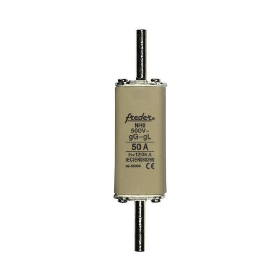 Siguranță fuzibilă MPR NH 50A FREDER, 500V AC, indicator vizual, dimensiune NH000, caracteristică gG.