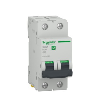 Întreruptor automat Easy9 2P 25A, 4500 A, curba C, pentru protecția circuitelor rezidențiale.