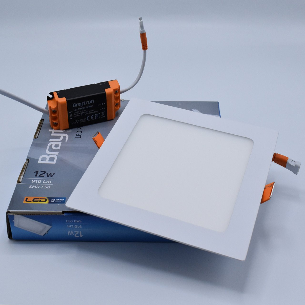Spot LED pătrat încastrat 12W, 910lm, 3000K, 170x170mm, alb, Braytron.