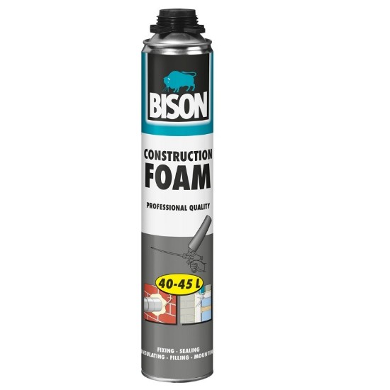 Spumă poliuretanică universală Bison de 750 ml, aplicabilă cu pistol, ideală pentru etanșare și izolare în interior și exterior.