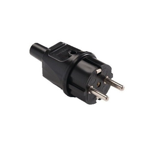 Stecher cauciucat negru 514K/N, rezistent la căldură și șocuri, cu protecție IP44, ideal pentru utilizare industrială și casnică.