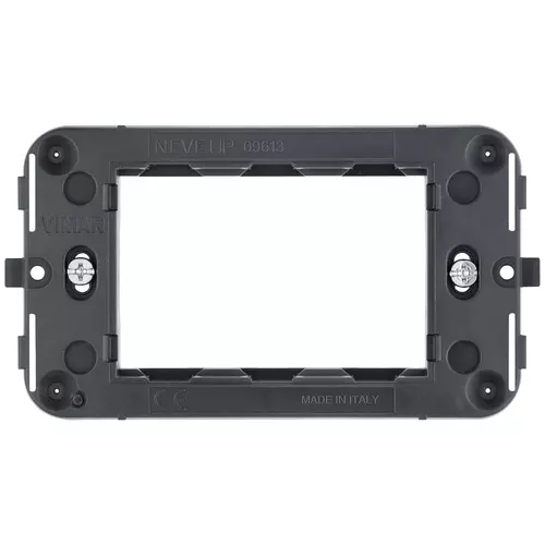 Suportul NEVE VIMAR 3M 09613 este un cadru de montaj cu 3 module, echipat cu șuruburi, destinat instalării dispozitivelor modulare de comutare în doze de montaj de 3 module. Fabricat din plastic termoplastic de înaltă calitate, acest suport permite montarea atât pe orizontală, cât și pe verticală, oferind flexibilitate în instalare. Este ideal pentru instalații încastrate și asigură o fixare solidă și durabilă a dispozitivelor electrice.