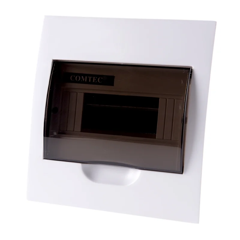 Tablou electric încastrat Comtec cu 6 module, IP40, ideal pentru distribuția energiei electrice în spații interioare.