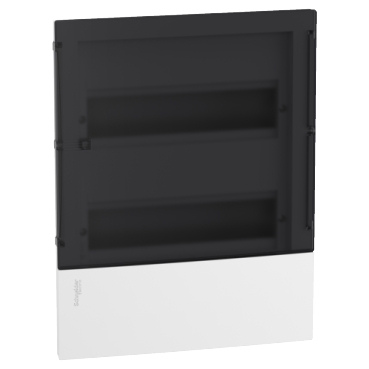 Resi9 MP Cofret ST 1R 12M cu usa fumurie este o carcasa modulara destinata instalatiilor electrice rezidentiale si comerciale mici. Acest cofret incastrat dispune de 1 rand cu 12 module de 18 mm, oferind spatiu suficient pentru echipamentele modulare necesare.