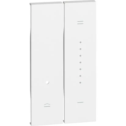 Tastă albă din tehnopolimer cu finisaj satinat și senzație mătăsoasă, destinată variatoarelor din seria Living Now de la BTicino. Echipată cu un sistem de auto-centrare care asigură o aliniere perfectă cu placa, menținând o suprafață plană a comutatorului. Compatibilă cu articolele K4410 și K4411, această tastă de 2 module este livrată în ambalaj dedicat pentru a păstra caracteristicile estetice nealterate.