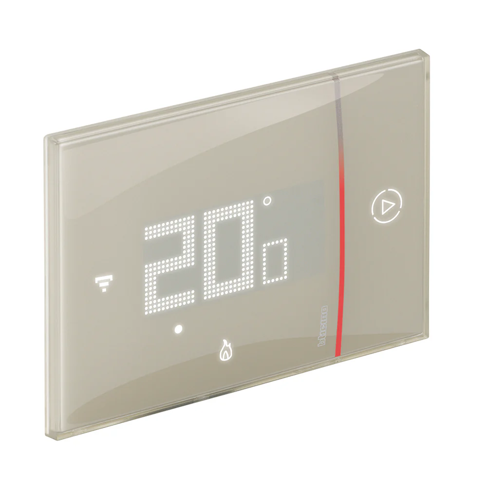 Termostat inteligent Smarther cu Netatmo, control Wi-Fi, culoare nisip, compatibil cu asistenți vocali.