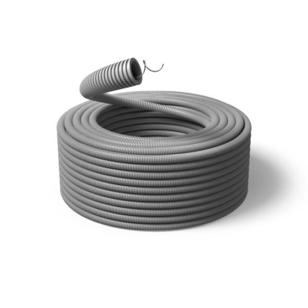 Tub flexibil HDPE 13 mm, 320N, gri, fără halogeni, 50 m, cu fir de tragere.